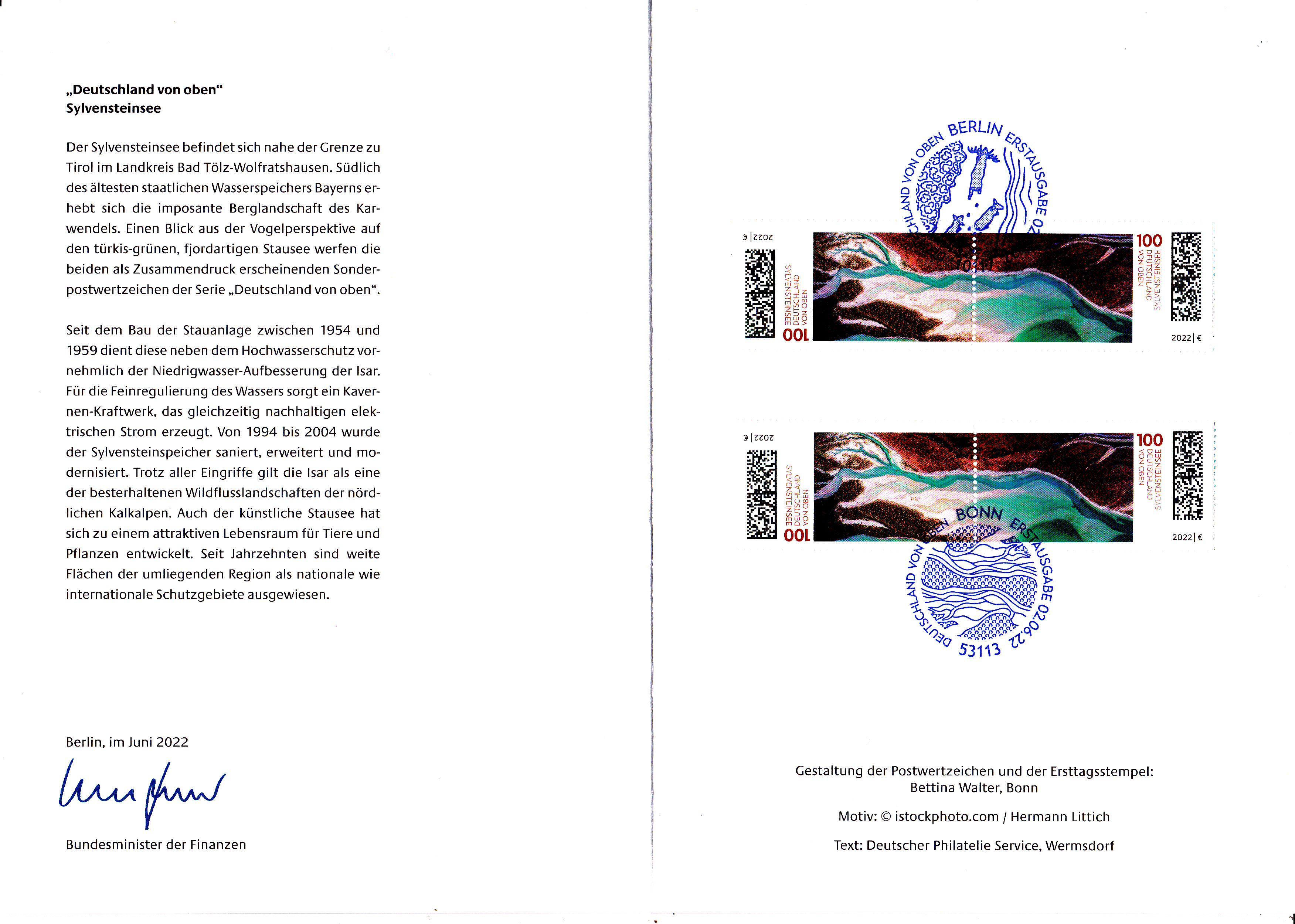 Das "Markenheftchen" ist als Leporello gestaltet, die Rückseite der Trägerfolie ist als "Postkarten" bedruckt. Das Heftchen sieht auseinander gefaltet so aus: