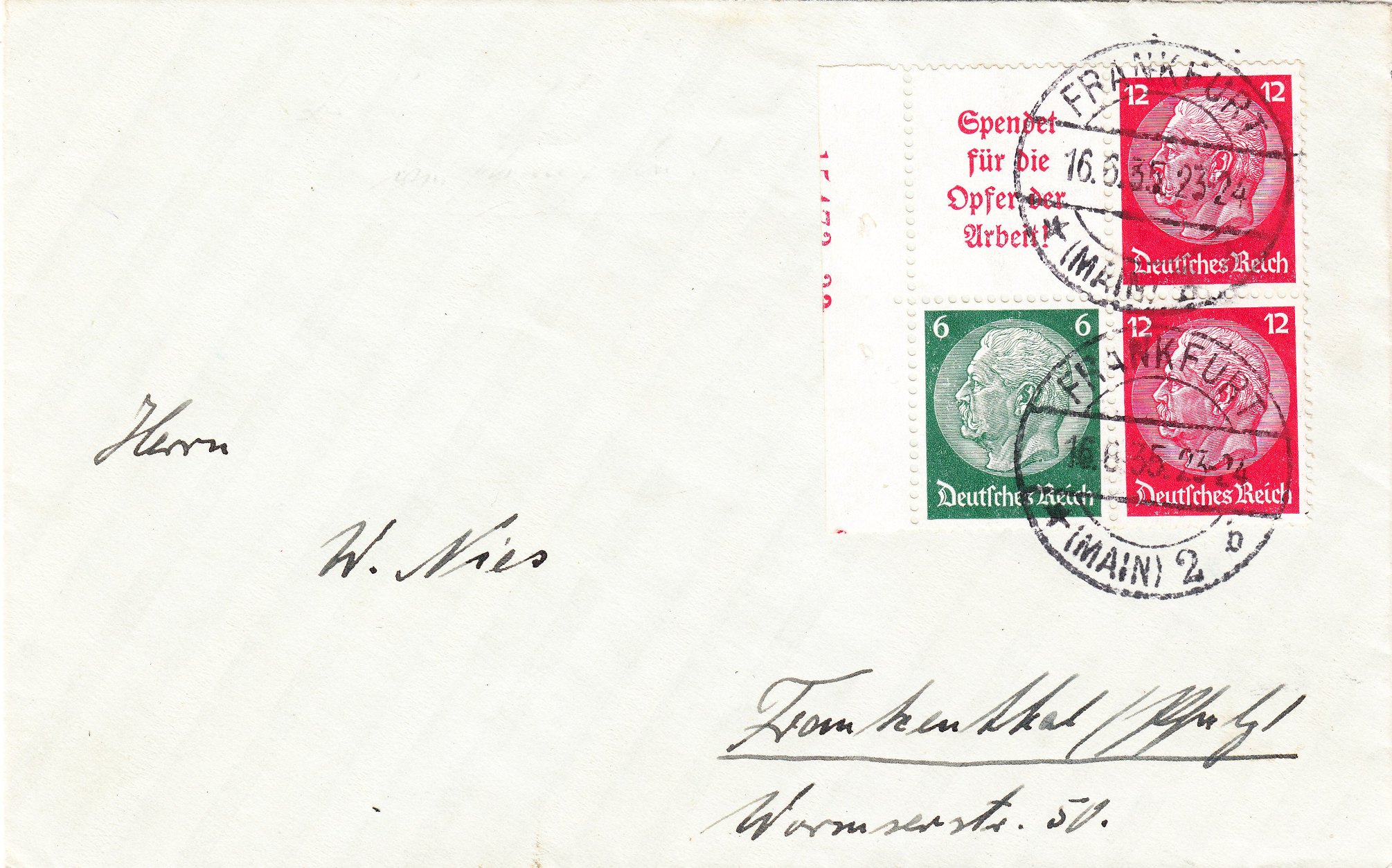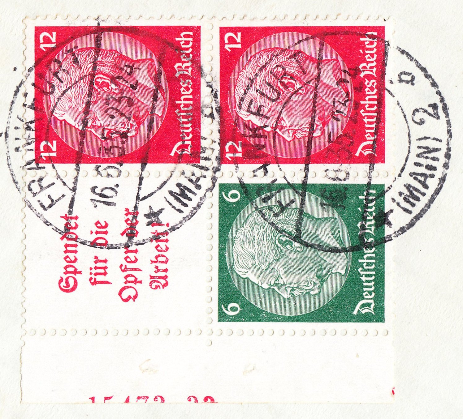 Diesen Zusammendruck der Dauerserie Hindenburg Medaillon auf Beleg habe ich heute beim Händler meines Vertrauens erstanden: