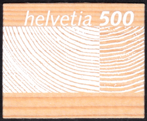 In der Schweiz ist eine Marke zum Thema "Rohstoff Schweizer Holz" (MiNr 1889) erschienen. Sie wurde im Siebdruck auf Fichtenfurnier als Einzelmarke selbstklebend hergestellt.