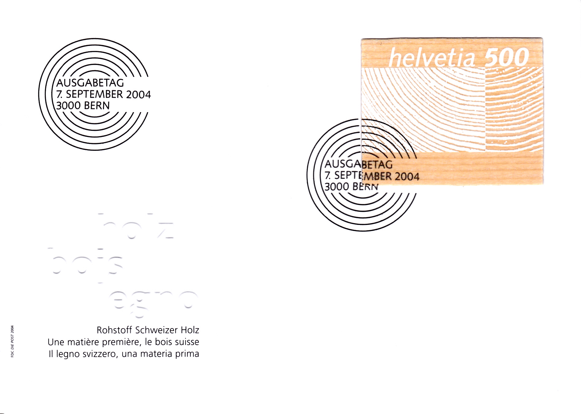 FDC der Post der Schweiz mit dieser "Holzmarke"
