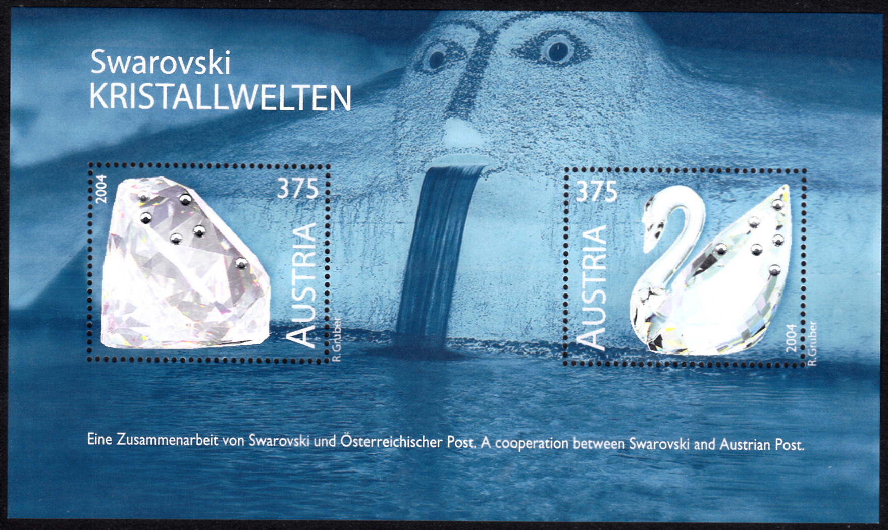 In Österreich ist dieser Block (MiNr Block 25 mit zwei Marken MiNr 2495/2496) zur Glaskunstausstellung „Swarovski Kristallwelten" in Wattens erschienen. Die beiden Blockmarken sind mit je sechs Swarovski-Kristallen beklebt.