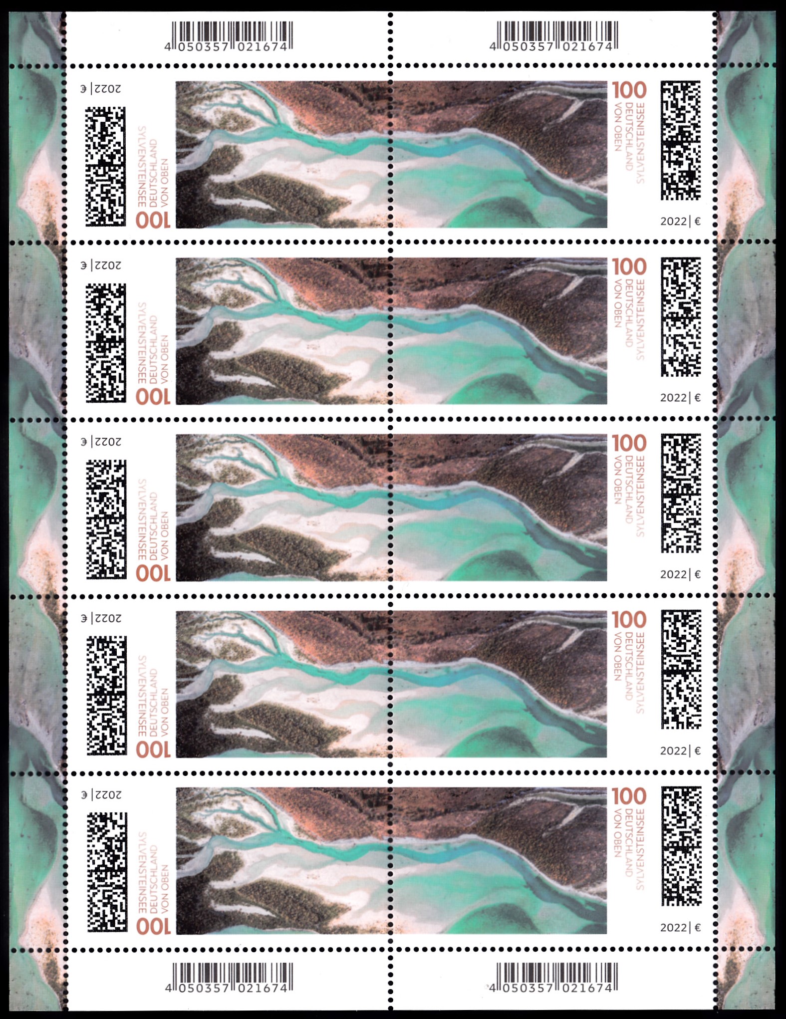 Das "Markenheftchen" ist als Leporello gestaltet, die Rückseite der Trägerfolie ist als "Postkarten" bedruckt. Das Heftchen sieht auseinander gefaltet so aus:
