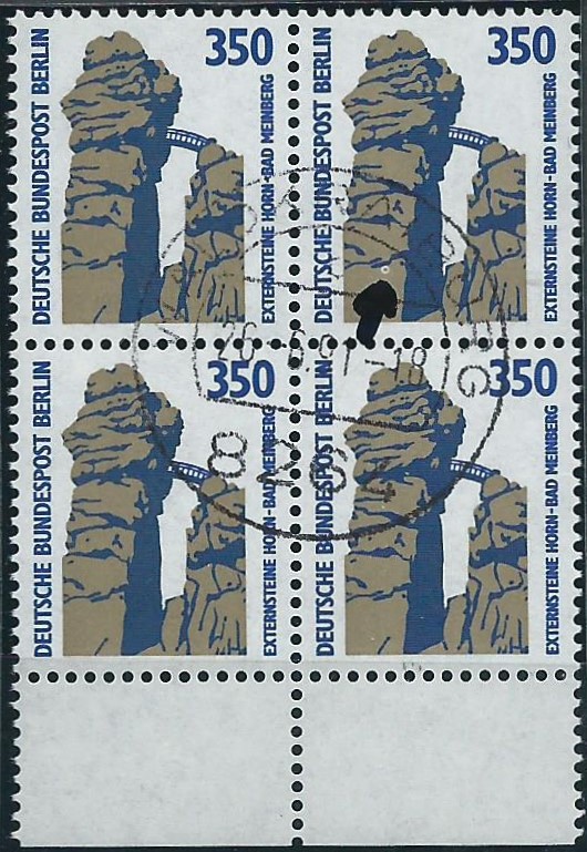 Dieser als Einschreiben per Eilzustellung echt gelaufene FDC ist als Portostufe eines Briefes im Fernverkehr von 21 bis 50 g (130 Pf), per Einschreiben (200 Pf) sowie Eilzustellung (350 Pf) mit 700 Pf als MeF mit zwei Werten zu 350 Pf der Dauerserie SWK, Ausgabe Berlin, einmal von der Rolle sowie einmal vom Bogen als Oberrand mit RWZ "210,00", also von Feld 8 stammend, um 20 Pf überfrankiert: