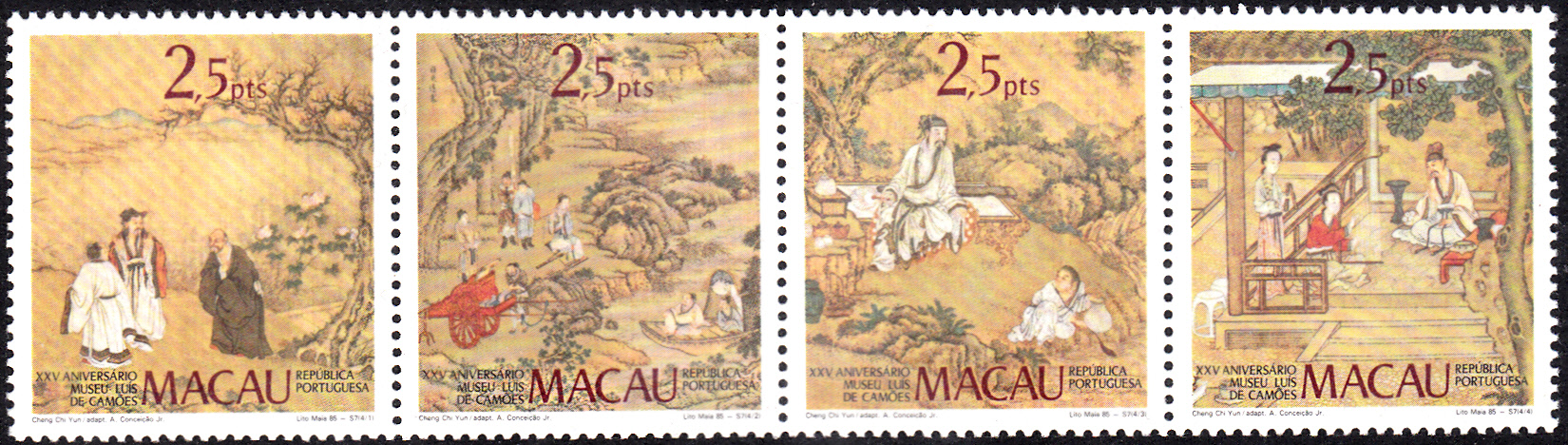 Zum Jubiläum "25 Jahre Museum Luis de Camões" ist am 27.Juni 1985 in Macau eine Serie mit Abbildungen von Seidenbilder von Cheng Chi Yun (19. Jh.) erschienen.