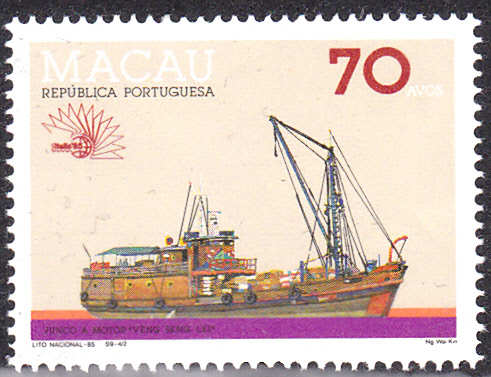 Am 25. Oktober 1985 erschien in Macau eine Serie zur Internationale Briefmarkenausstellung ITALIA ’86 in Rom mit Frachtschiffen.