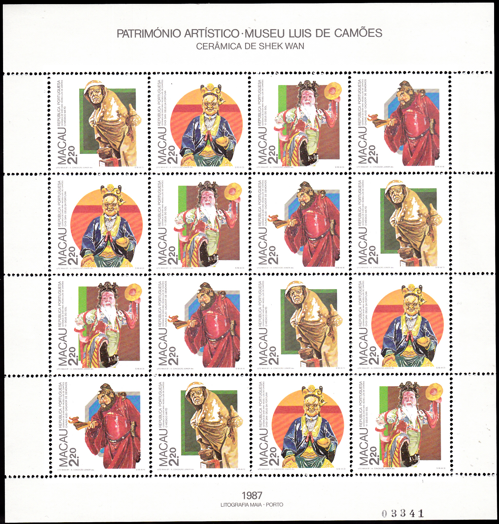 AM 10.4.1987 erschien in Macau eine Serie "Keramiken aus dem Luís-de-Camões-Museum". Hier die beiden ersten Marken der Serie: