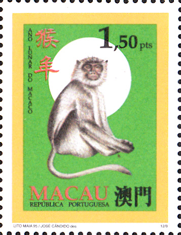 Im 12-Jahre-Zyklus des Chinesischen Kalenders ist das Jahr des Affen das 9. Jahr. Hier die Marke dieser Serie zum Jahr des Affen (MiNr 840):