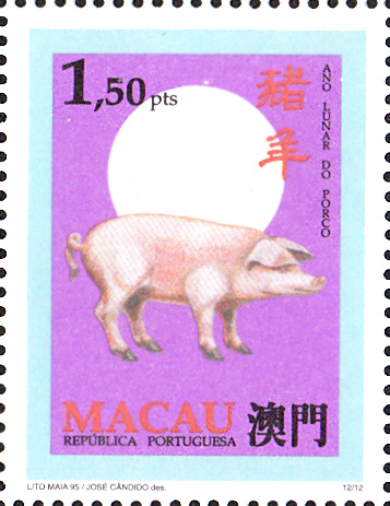 Das Jahr des Schweines beschließt den 12-Jahre-Zyklus des Chinesischen Kalenders. Die dazu passende Marke hat die MiNr 843.