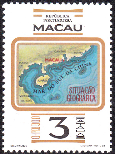 Am 1. Dezember 1982 erschien in der Ausgab "Geographische Lage von Macau" diese Marke (MiNr 495). Sie zeigt Macau mit den beiden zu Macau gehörenden Inseln Taipa und Coloane. Inzwischen verbindet eine zweite Brücke Macau mit der Insel Taipa und durch ein Landgewinnungsprojekt wachsen die Inseln immer weiter zusammen.