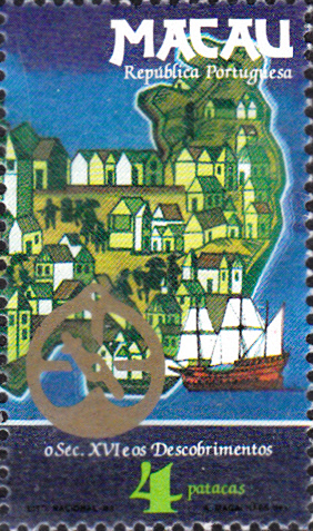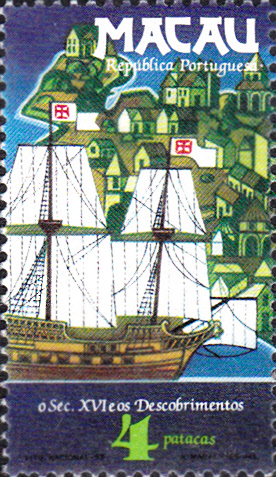 Am 15. Nov. 1983 erschien in Macau eine Ausgabe zum Thema "Entdeckungen des 16. Jahrhunderts". Diese Marke (MiNr 511) zeigt eine Galeone vor einem Teil der Karte von Macau.