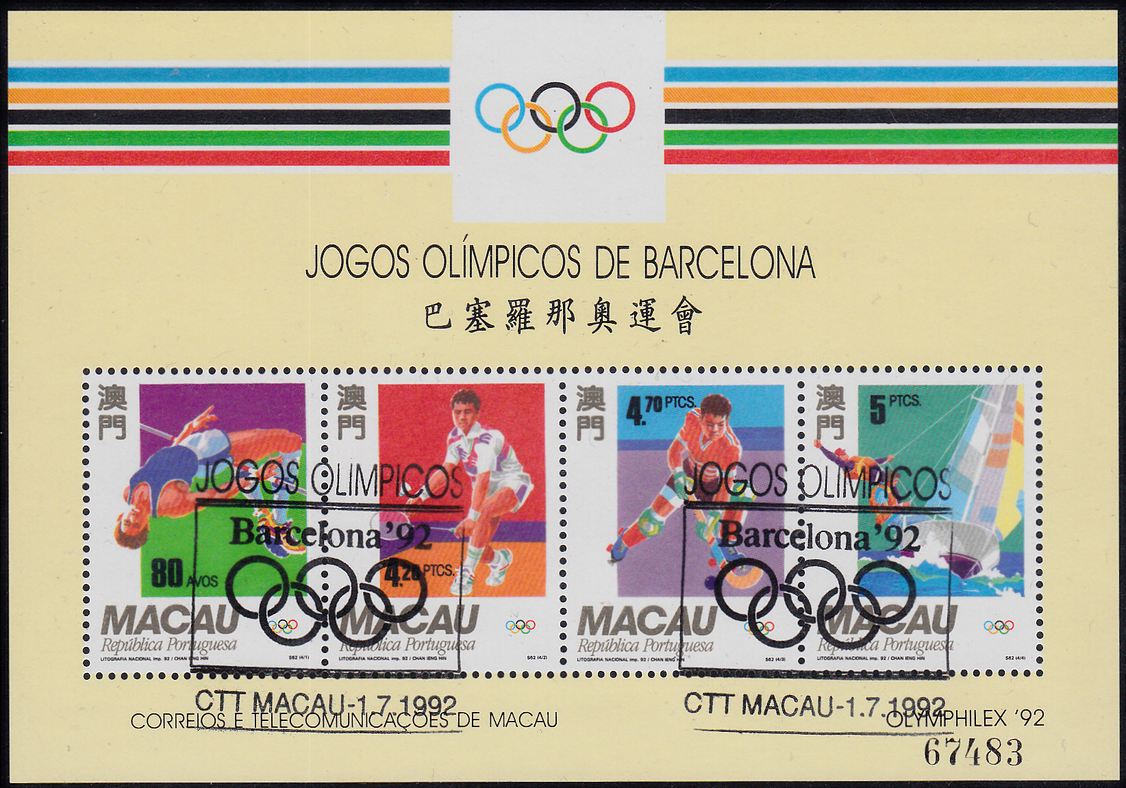 Zu den Olympischen Sommerspielen 1992 in Barcelona erschien in Macau eine Serie mit vier Marken. Hier je ein Eckrandstück: