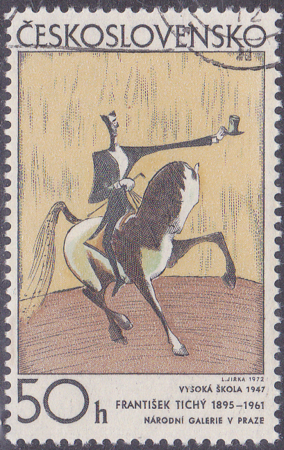 In einer Serie "Tschechische und slowakische Graphik" erschien in der Tschechoslowakei diese Marke (MiNr 2061) mit der Zeichnung "Hohe Schule (Zirkusreiter)" nach einer Zeichnung von František Tichy.