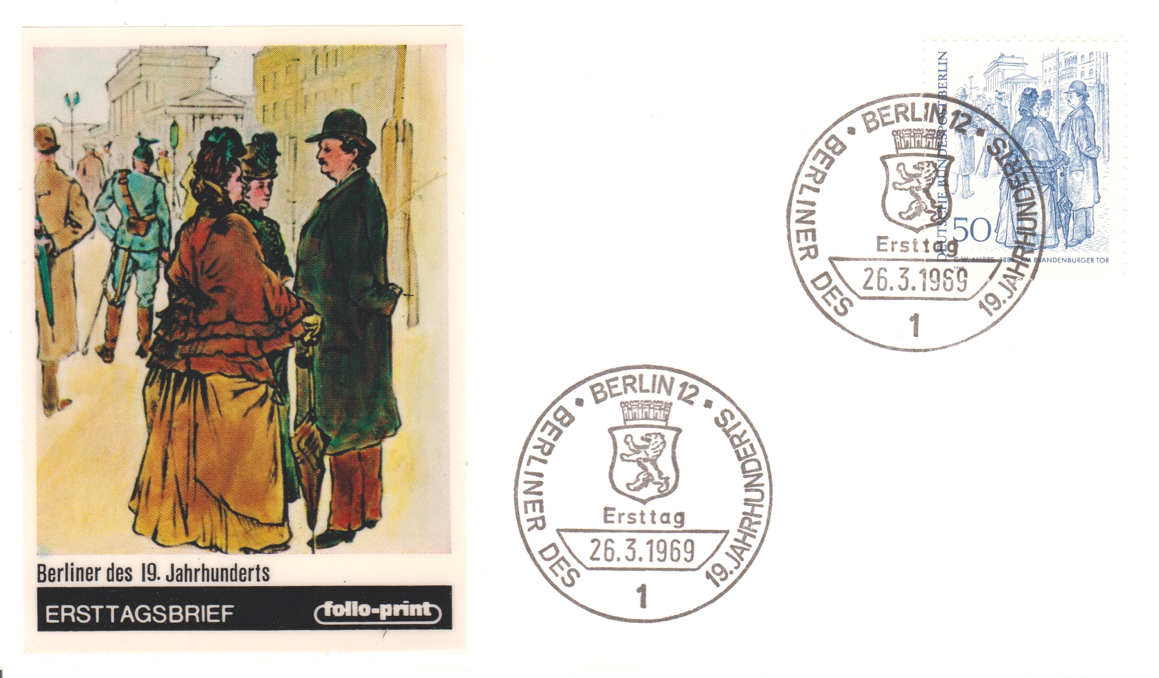 Berlin MiNr. 337 zeigt seine Zeichnung "Am Brandenburger Tor", hier mit Sonderstempel "Ersttag BERLINER DES 19. JAHRHUNDERTS":