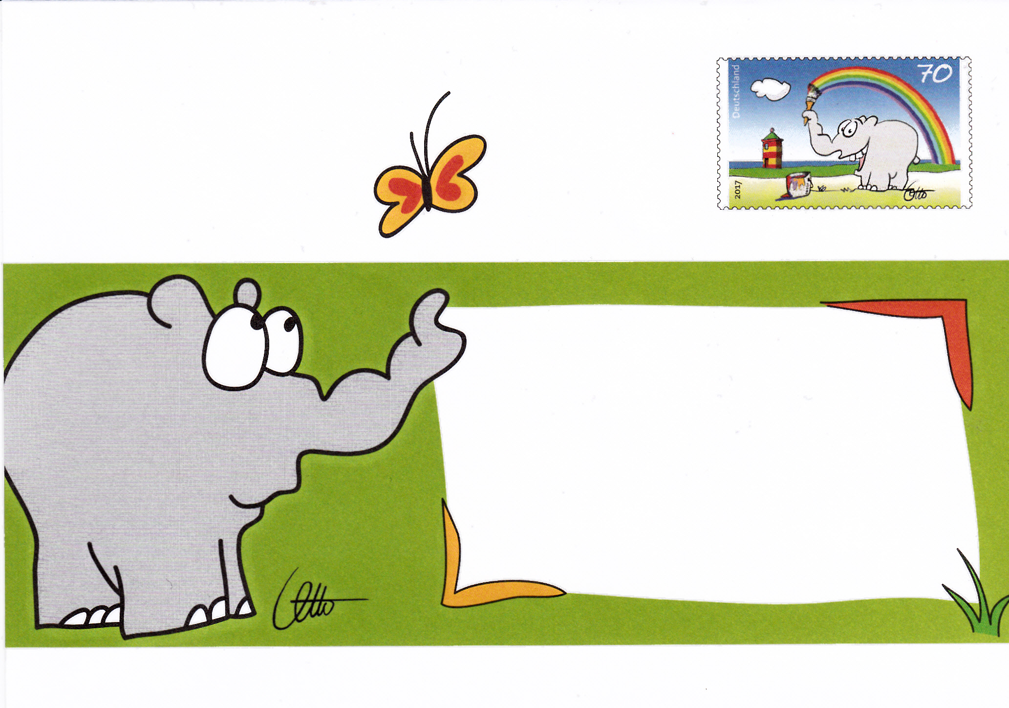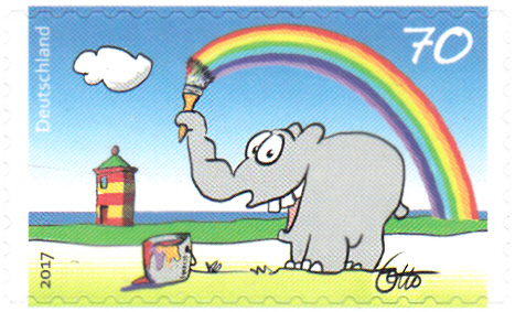 Bei der Deutschen Post AG ist am 1.3.2017 eine Marke (MiNr 3292) mit der Zeichnung "Bunter Gruß vom Ottifant" von Otto Waalkes erschienen.