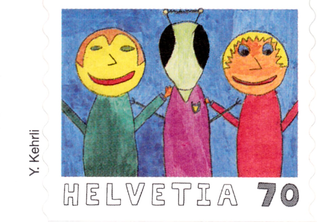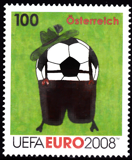 Es folgt eine Marke (MiNr 2724) mit einer weiteren Zeichnung aus dem Briefmarkengestaltungswettbewerb für Kinder und Jugendliche zur Fußball-Europameisterschaft in Österreich und der Schweiz. Sie zeigt den Lindwurm, das Wahrzeichen Klagenfurts auf einem Ball nach einer Zeichnung von Bolona Jencic (19 J.).