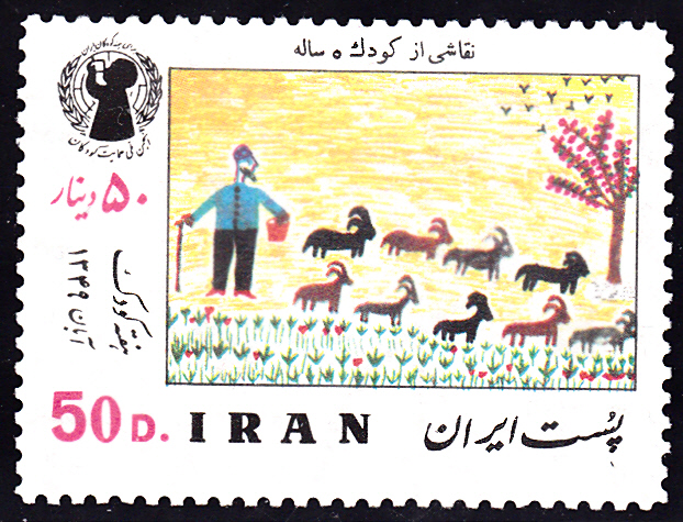 NZur "Woche des Kindes 1970" ist im Iran in einer Serie mit Kinderzeichnungen diese Marle (MiNr 1494) mit der Zeichnung "Hirte mit Ziegenherde" erschienen.
