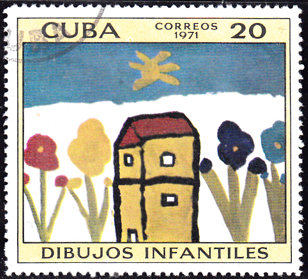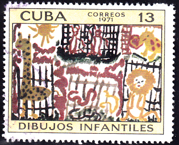 Zu einer Ausstellung kubanischer Kinderzeichnungen ist in einer Serie in Kuba diese Marke (MiNr 1711) diese Marke mit der Kinderzeichnung "Zoo" erschienen.