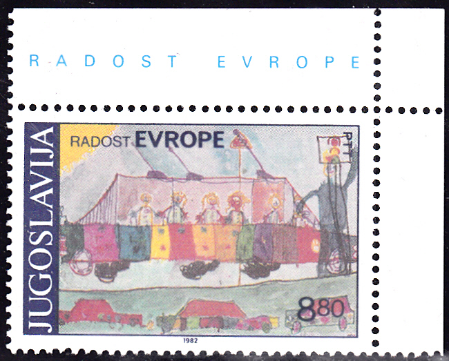 Zum Europäischen Kindertreffen "Freude Europas" erschien in Jugoslawien diese Mark (MiNr 1945) mit der Kinderzeichnung "Schulbus" von Božo Tibor.