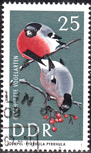 Auch in der DDR ist eine Marke (MiNe 1275) mit zwei Gimpel (Pyrrhula pyrrhula) erschienen.