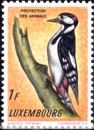 Einen weiteren Buntspecht sehen wir auf dieser Marke aus Luxemburg (MiNr 637).