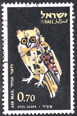 Auf dieser Marke aus Israel (MiNr 277) wird eine weitere Zwergohreule (Otus scops) aus der gleichnamigen Gattung gezeigt.