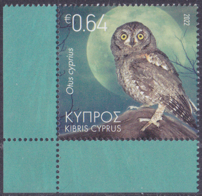 Diese Marek aus Zypern (MiNr 1475) zeigt eine Zypern-Zwergohreule (Otus cyprius).