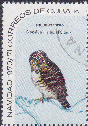 Aus Kuba kommt diese Marke (MiNr 1644) mit einem Kubazwergkauz (Glaucidium siju).