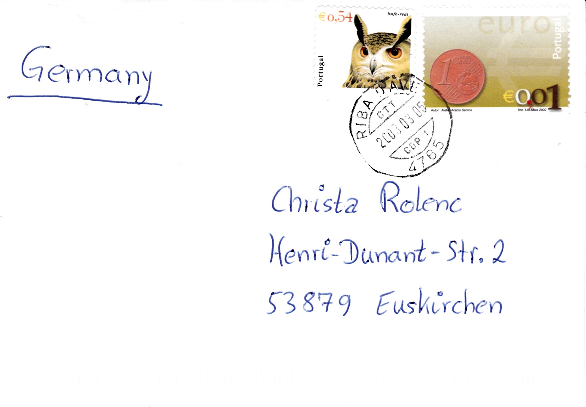 Diese selbstklebende Marke aus Portugal (MiNr 2575) zeigt einen Uhu (Bubo bubo). Die Marke gibt es in zwei Varianten: