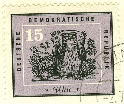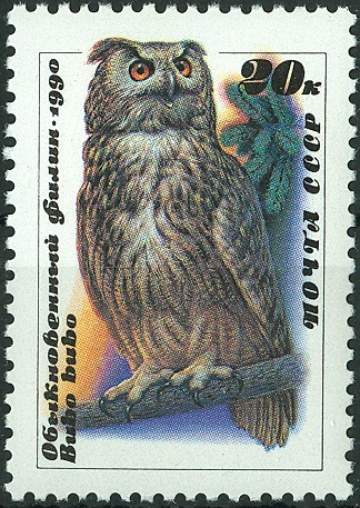 Eine CSSR-Markenausgabe des Jahres 1986 mit Eulen-Motiven beinhaltet auch eines mit einem Uhu.