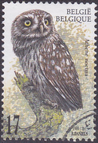 In Belgien erschien dieser Steinkauz (Athene noctua) auf einer Marke (MiNr 2858) in einer Serie "Eulen".