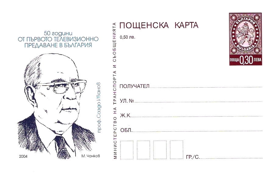 PC 33030. April - 50 Jahre seit der 1. Fernsehübertragung in Bulgarien. - Wert 0,30 Lv. - Auflage 1500