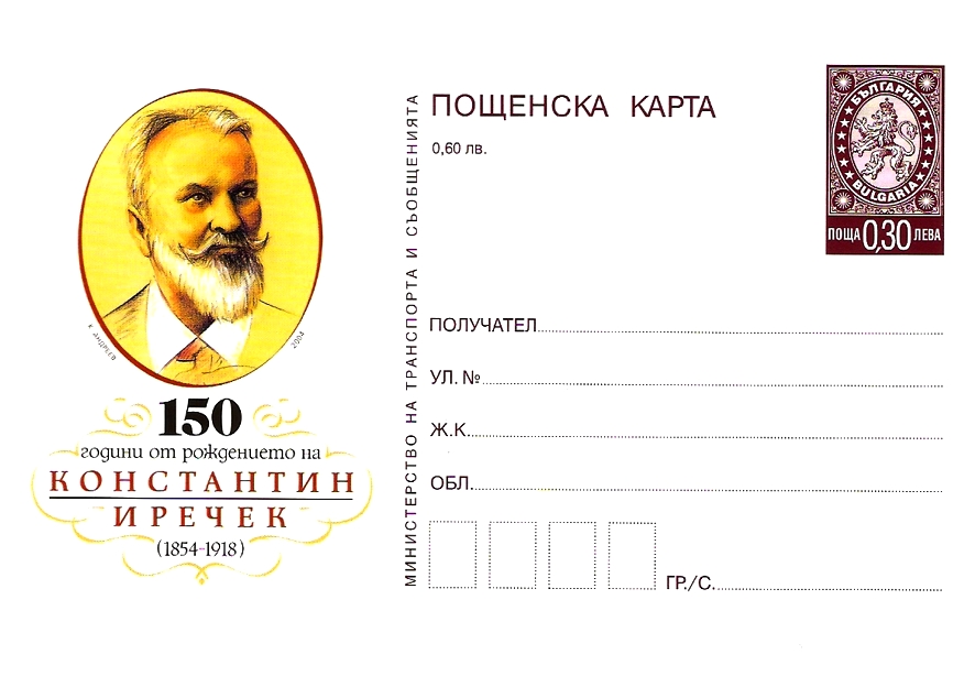 PC 3327. Juli - 150. Geburtstag von Konstantin Irechek - Wert 0,30 Lv. - Auflage 900