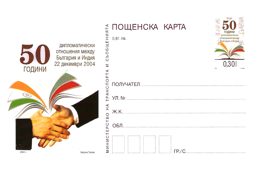 PC 3392. Dezember - 50 Jahre diplomatische Beziehungen Bulgarien - Indien. Wert 0,30 Lv. - Auflage 1080