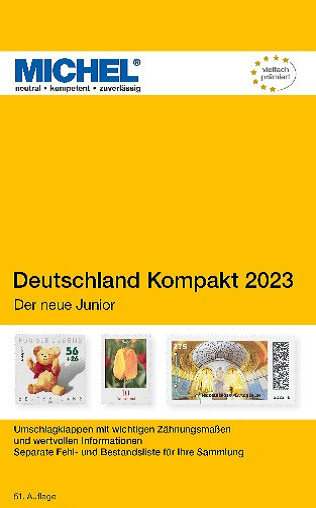 Am 4.Dezember 2020 erschien der Michel-Junior Deutschland-Katalog 2020, der jetzt Michel Kompakt 2021 heißt, in der 49. Auflage in Farbe mit 680 Seiten im Format 115 x 188 mm kartoniert. Der Katalog kostet in der Papierform 15,00 €. Er enthält folgende Markenausgaben: Altdeutschland, Deutsches Reich, Auslandspostämter, Kolonien, Besetzungsausgaben des Ersten und Zweiten Weltkrieges, Abstimmungsgebiete (mit Saargebiet), Danzig, Memel, Böhmen und Mähren, Generalgouvernement, Sudetenland, Feldpostmarken, Lokalausgaben, Alliierte Besetzung (Gemeinschaftsausgaben, Berlin und Brandenburg, SBZ, Französische Zone, Amerikanische und Britische Zone), DDR, Berlin (West), Saarland und BRD.