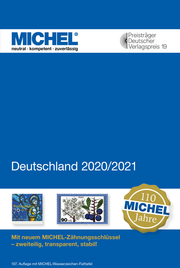 Am 3.7.2020 erscheint ein neuer Michel Deutschland 2020/2021 in der 107. Auflage in Farbe mit 1184 Seiten im Format 155 x 230 mm als Hardcover mit Lesebändchen. Der Katalog kostet in der Papierversion 59,80 €.