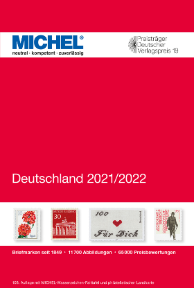 Am 9.7.2021 erscheint ein neuer Michel Deutschland 2021/2022 in der 108. Auflage in Farbe mit 1184 Seiten im Format 155 x 230 mm als Hardcover. Der Katalog kostet in der Papierversion 62,00 €.