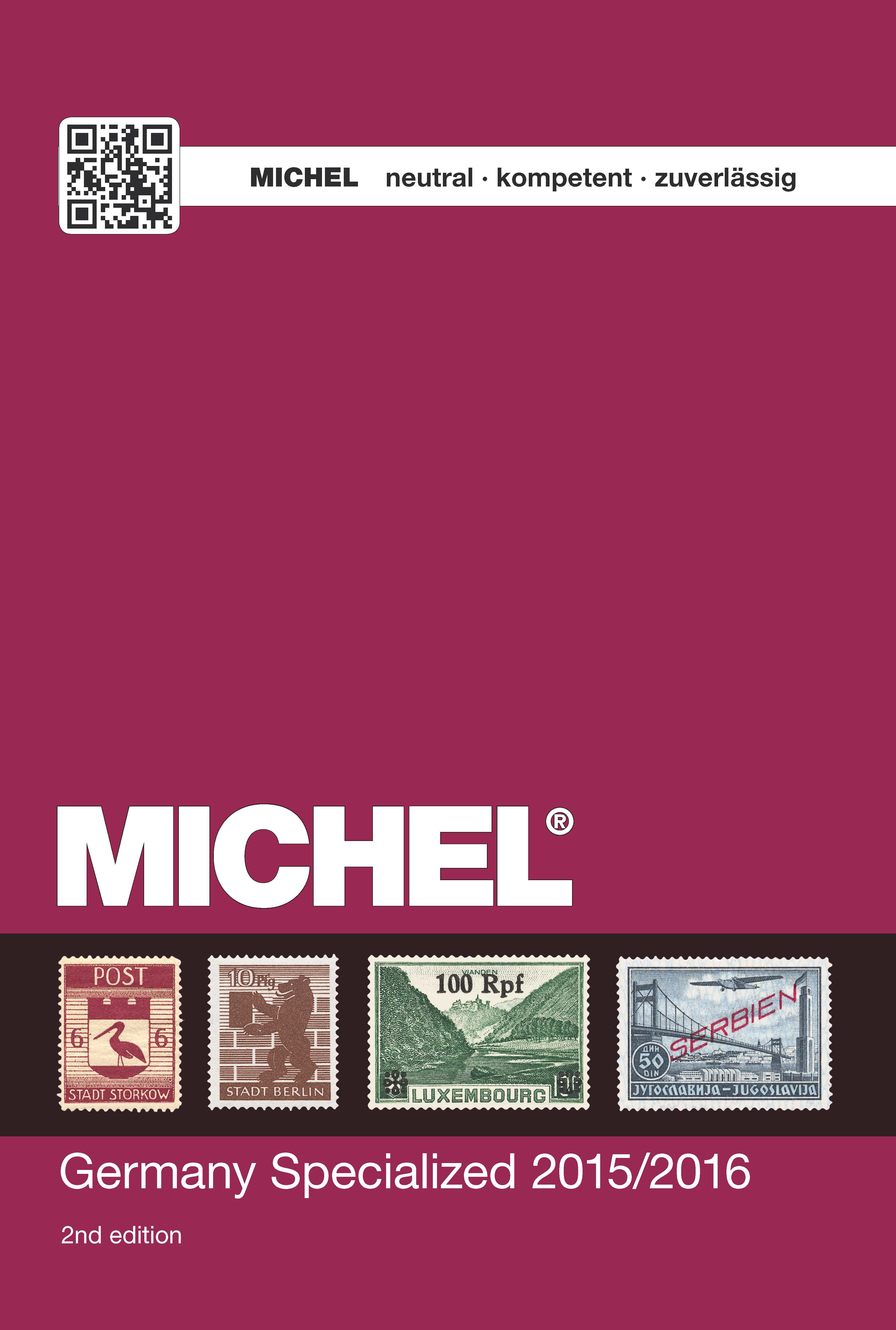 Die englische Ausgabe des Michal Spezial-Kataloges ab 1945, der Germany Specialized 2015/2016 (Vol. 2) (Ab Mai 1945, Alliierte Besetzung bis BRD) erschien in der 2. Auflage wieder in Farbe mit insgesamt 507 Seiten im Format: 155 x 230 mm als Hardcover. Erstverkaufstag war der 6. Nov. 2015.