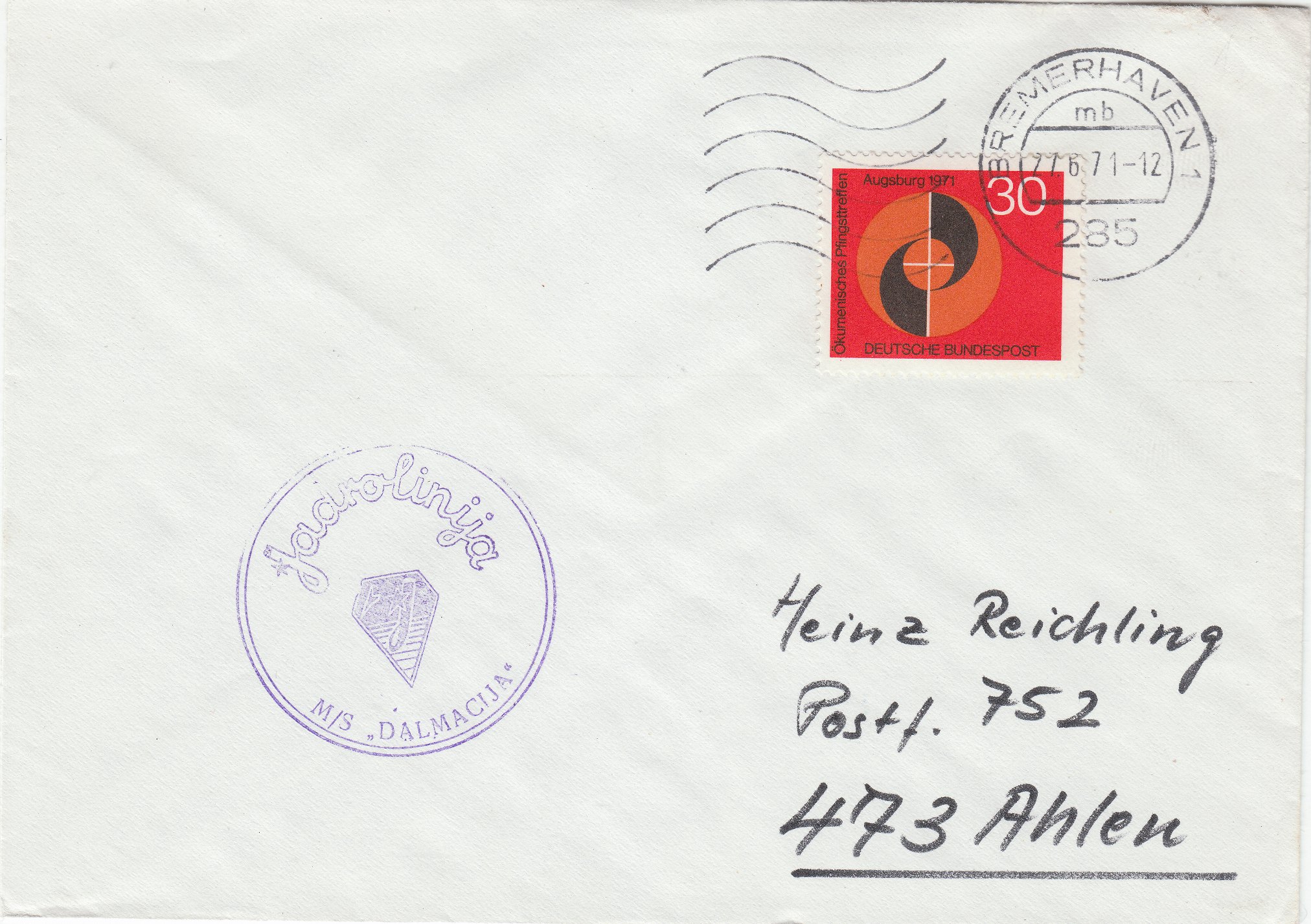 Diese Postkarte wurde während der vom 25.06.1977 bis 07.07.1977 dauernden Kreuzfahrt der MS DALMACIJA am 30.06.1977 am Nordkap,