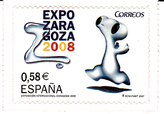 Zur Weltausstellung EXPO 2008 in Saragossa erschien bereits am 5.7.2007 als erste Markenausgabe in Spanien dieser selbstklebende Wert (MiNr 4239) mit einer Abbildung des Maskottchen Fluvi und dem Ausstellungsemblem.