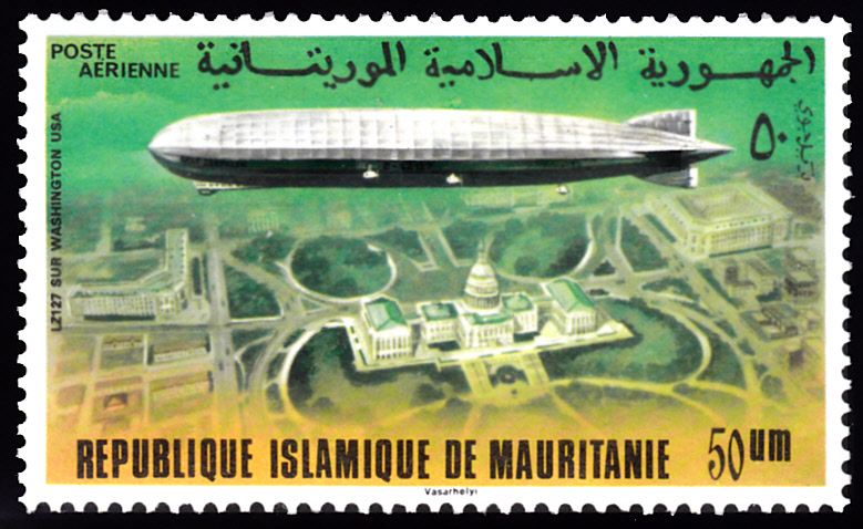 In Mauretanien ist diese Marke (MiNr 543) mit dem Luftschiff LZ 127 "Graf Zeppelin" über dem Capitol in Washington.
