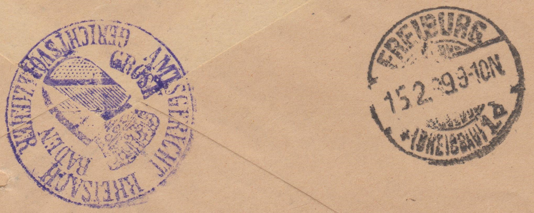 Portopflichtige Dienstsache per Nachnahme, adressiert nach Freiburg, aufgegeben am 15.02.1899 in BREISACH:
