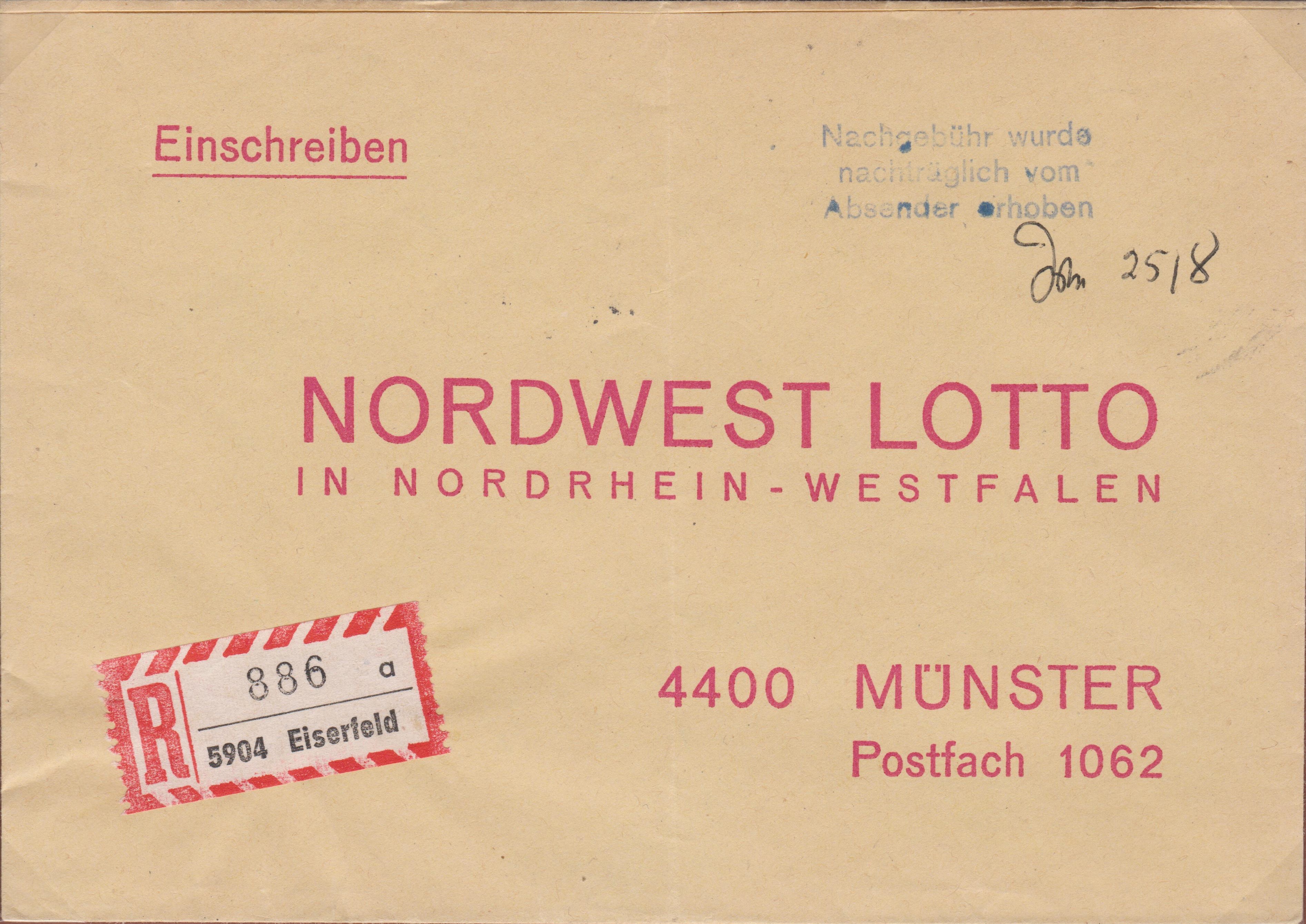 Diese Briefe an den Empfänger "Nordwestlotto" wurden unfrankiert aufgegeben: