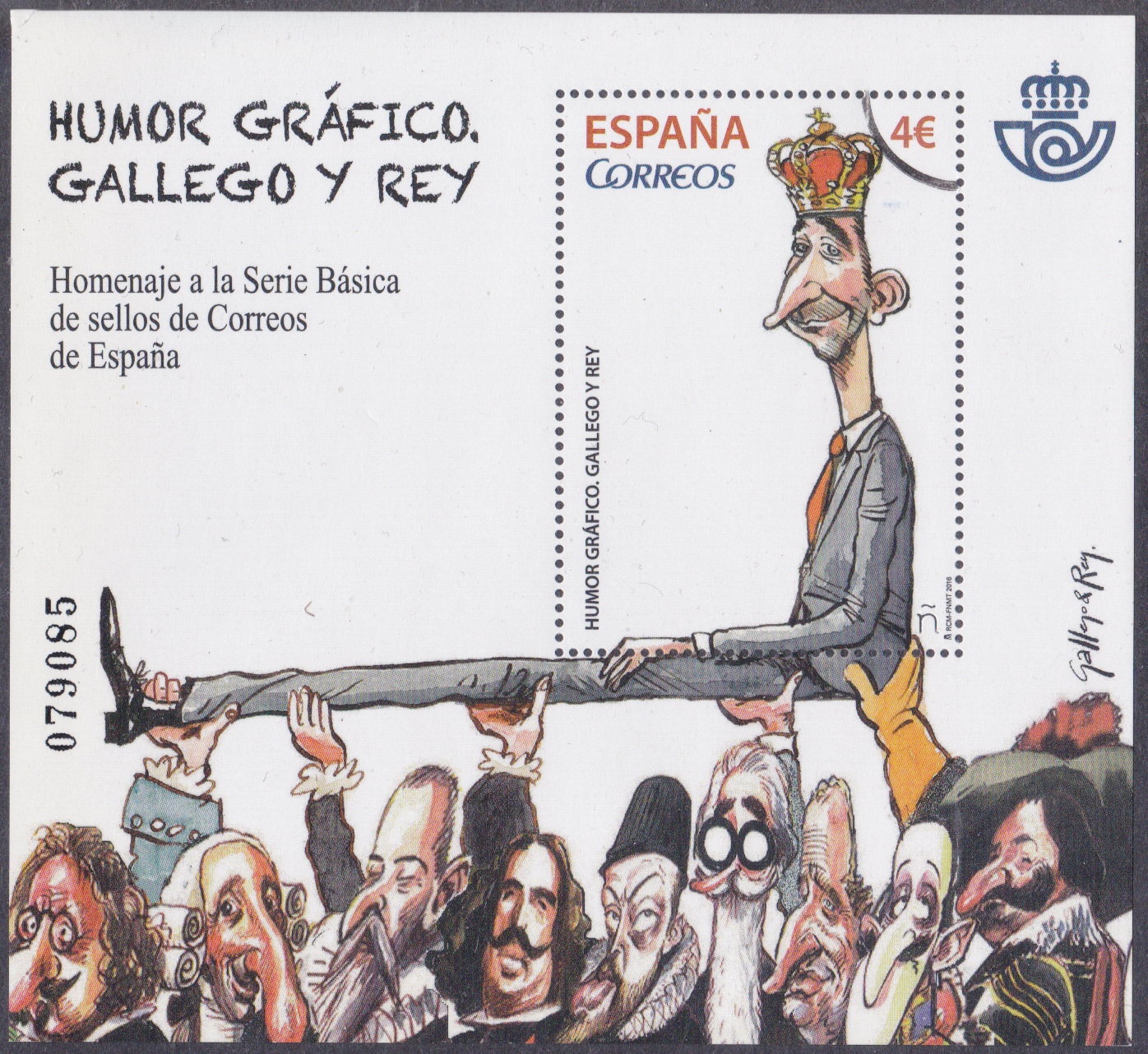 In Spanien ist in einer Reihe "Gezeichneter Humor" ein Block (MiNr Block 278) mit Marke MiNr 5073) mit der Karrikatur "König Felipe VI." von José María Gallego und Julio Rey erschienen.