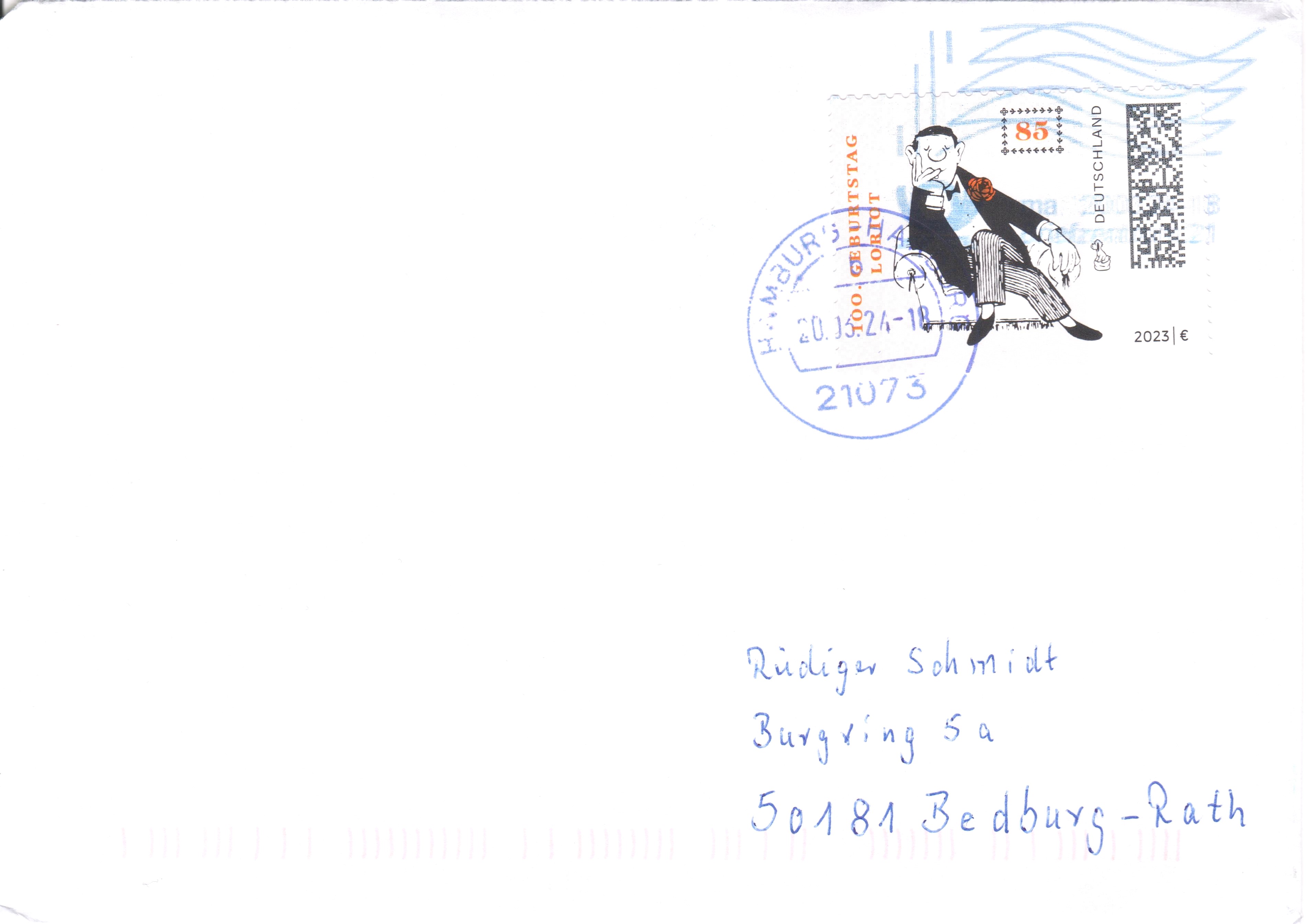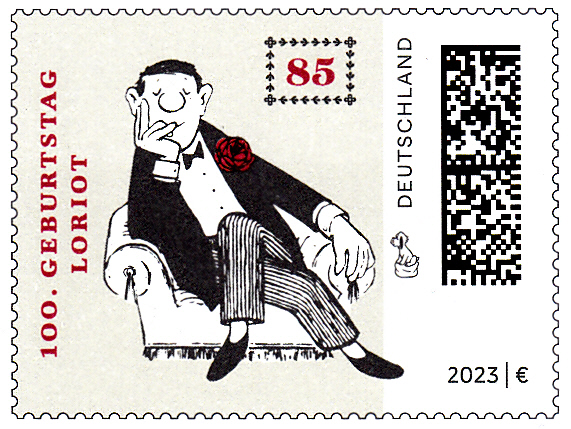 Zur Philatelia in München erschien eine Messeganzsache mit dem Wertzeicheneindruck im Muster der Marke (MiNr 3800) mit von Bülow alias Loriot auf einem Sessel sitzend nach einer Zeichnung von Vicco von Bülow. Hier zeige ich ein ungestempeltes Exemplar.