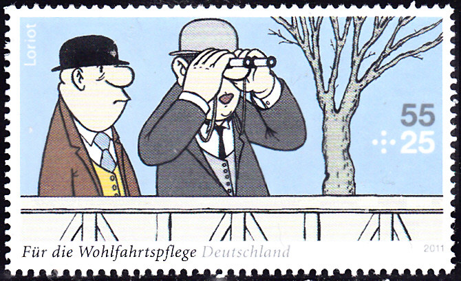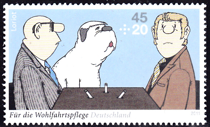 Die Wohlfahrtsmarken 2011 der Deutschen Post zeigten Motive aus Zeichentrickfilmen von Loriot. Auf der Marke zu 45+20 Cent (MiNr 2836) sehen wir eine Abbildung zu "Der sprechende Hund".