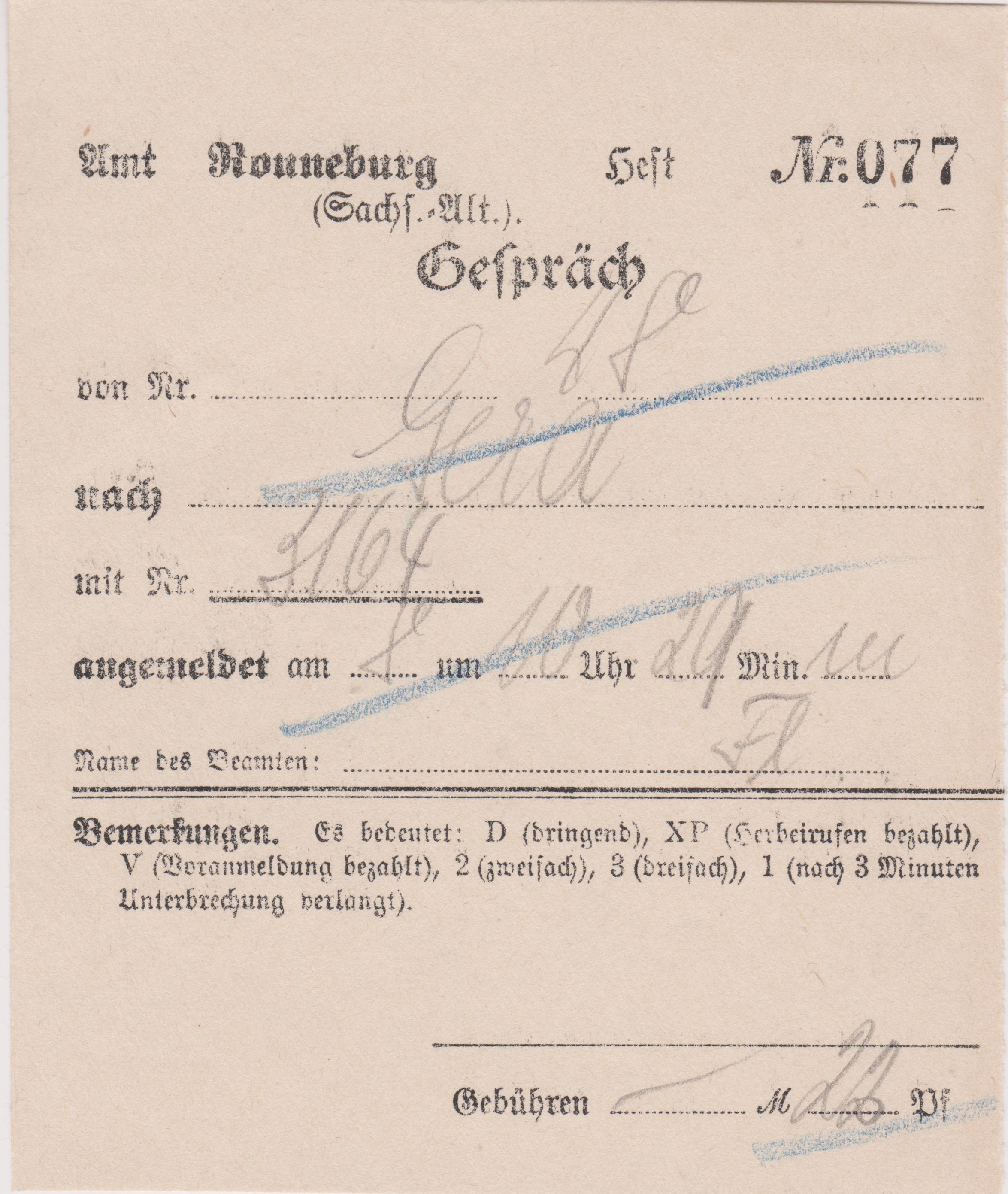 Solche Formulare "Mitteilung über Telefonanschluß" beförderte die Post gebührenfrei!