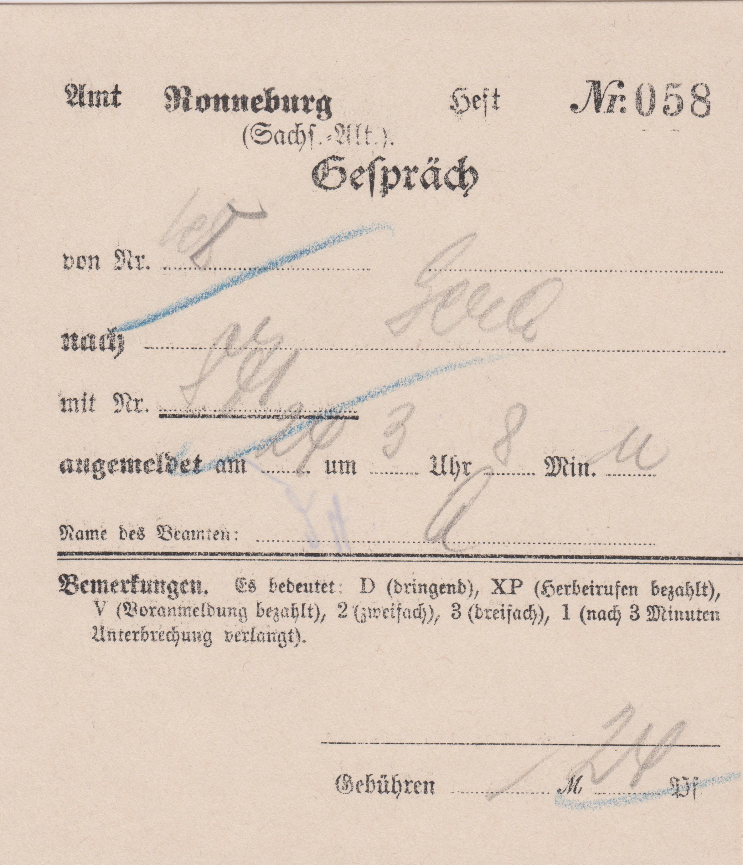 Es handelt sich um eine "Quittung über Fernsprechgebühren" aus RONNEBURG in Sachsen-Anhalt mit Tagesstempel vom 01.01.1919: