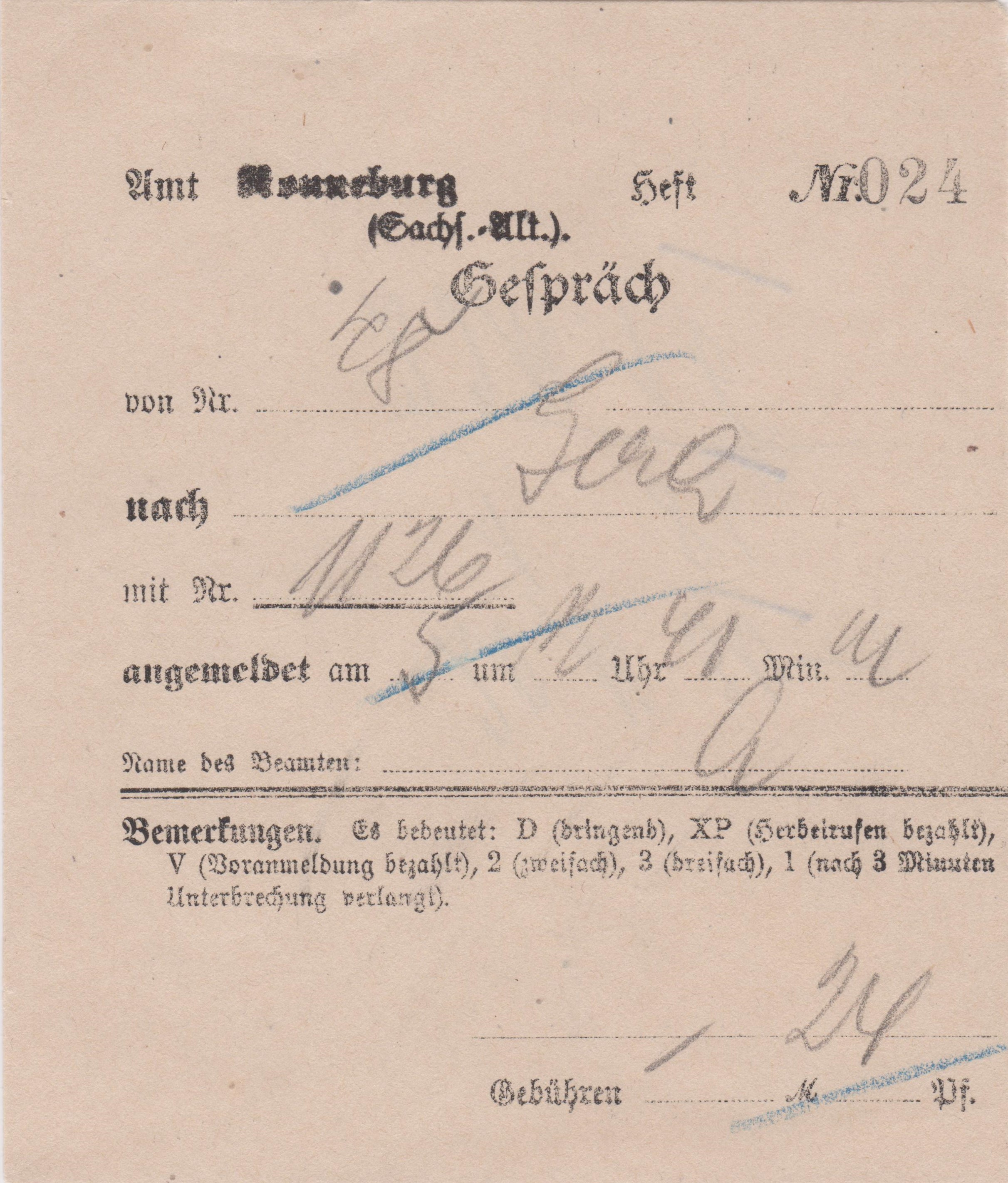 Solche Formulare "Mitteilung über Telefonanschluß" beförderte die Post gebührenfrei!