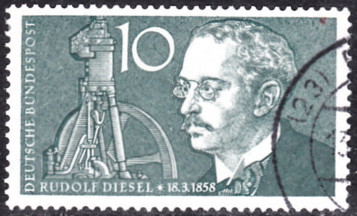 Zum 100. Geburtstag von Rudolf Diesel gab es bei der Deutschen Bundespost eine Marke (MiNr 284) mit einem Porträt von Rudolf Diesel und einem Dieselmotor.