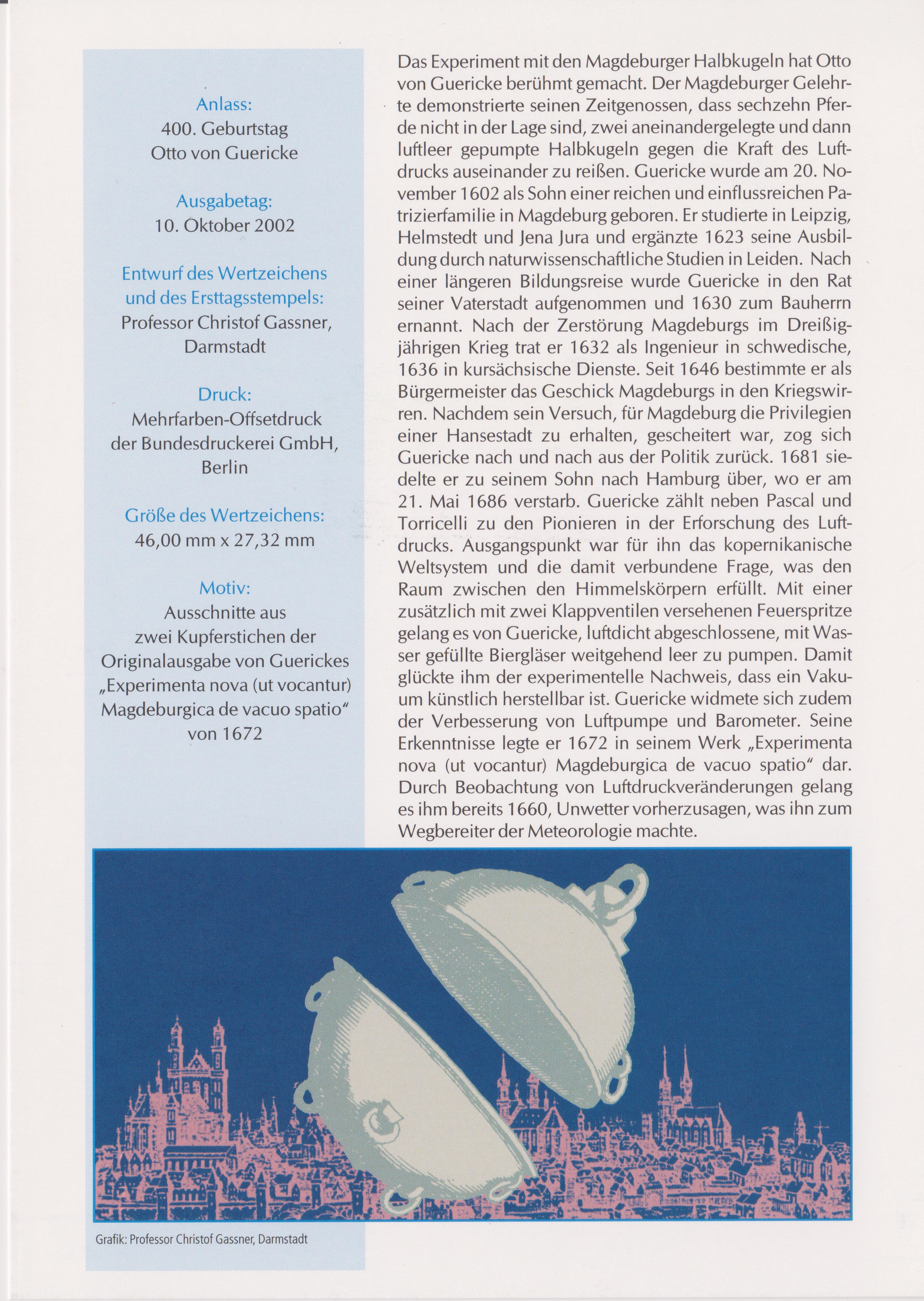 ETB 37/2002 zeigt das zum 400. Geburtstag von Otto von Guericke erschienene Postwertzeichen: